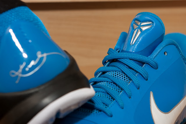 This blue pair kind of reminded me of the Lebron VII All-Star. It uses a different blue where the light baby blue base is backed by black mid-sole and white out-sole. Obviously Kobe has never put this on due to limitation of Laker's jersey color, but this is also a really hot one where I might hoop on this in one day.